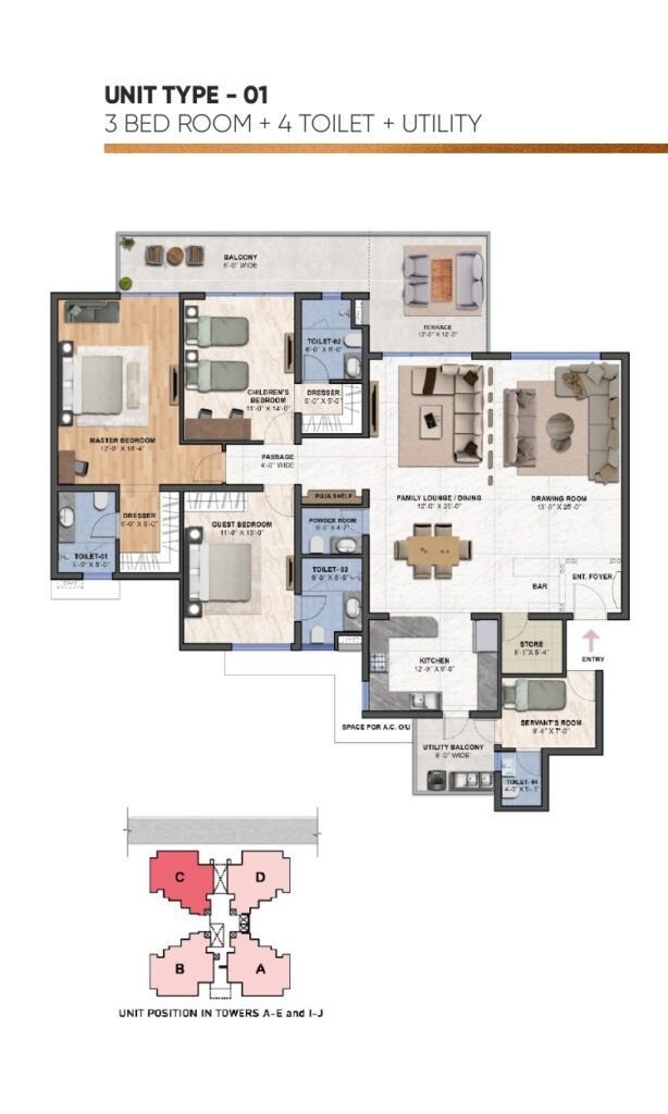 3BHK+1, 4BHK+1 Flats